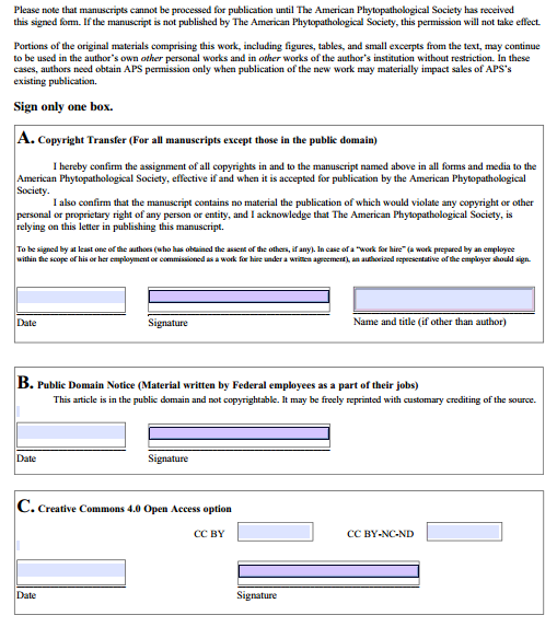 第一次投稿,请问各位老师,copyright 这个PDF文件是只要填A.B.C中一个么?还是三个都要签?只要签一个作者就可以了么?是签通讯作者还是第一作者? 是正常程序么? 是要打印出来手写然后再扫描上传么? 请各位老师帮忙解答下,谢谢! {N]OE8B%54(TO(Z7UHKPJHH.png |