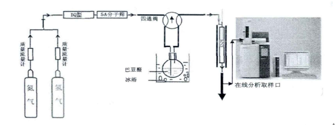 我不确定我理解的是否正确,看你的检测是在最后使用气相色谱的方法检测,不知你是要检测进入系统前的分压还是之后的分压。实际气体虽然和理想气体有偏差,可以使用检测摩尔百分数的方法来检测分压,如果是进入系统前则检测点应设在进入系统之前。