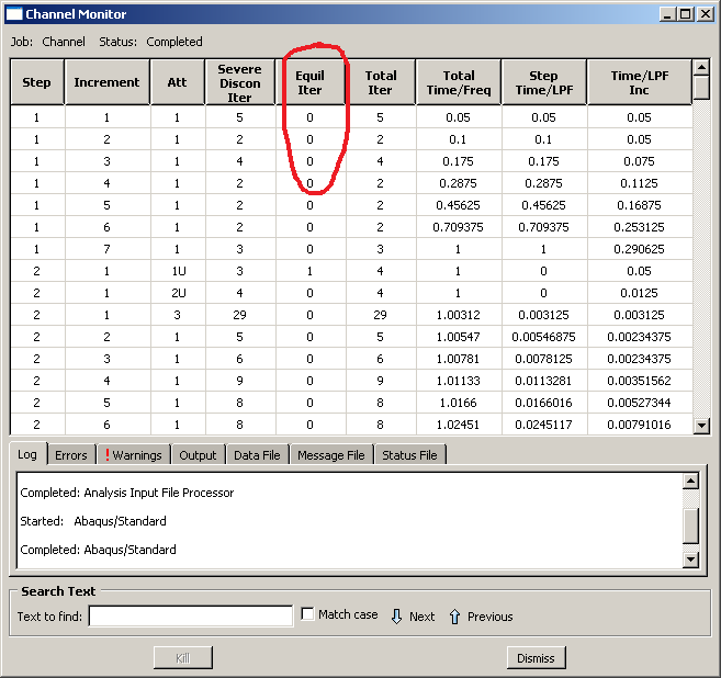 使用ABAQUS进行材料非线性以及接触的分析,运行时“监视窗口”里的“等效迭代”为0,但计算依然在进行,过了几步增量的迭代,逐渐不再是0了,截屏如下。 求助各位大神:这种情况对么?不是只有等效迭代了才能往下一步进行么?还是我哪里做的不对? 谢谢大神们了~ gsi-channel-top-monitor-nls.png |