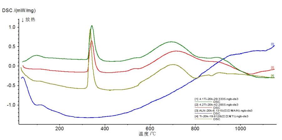 热分析DSC Ti粉和AlN粉的反应