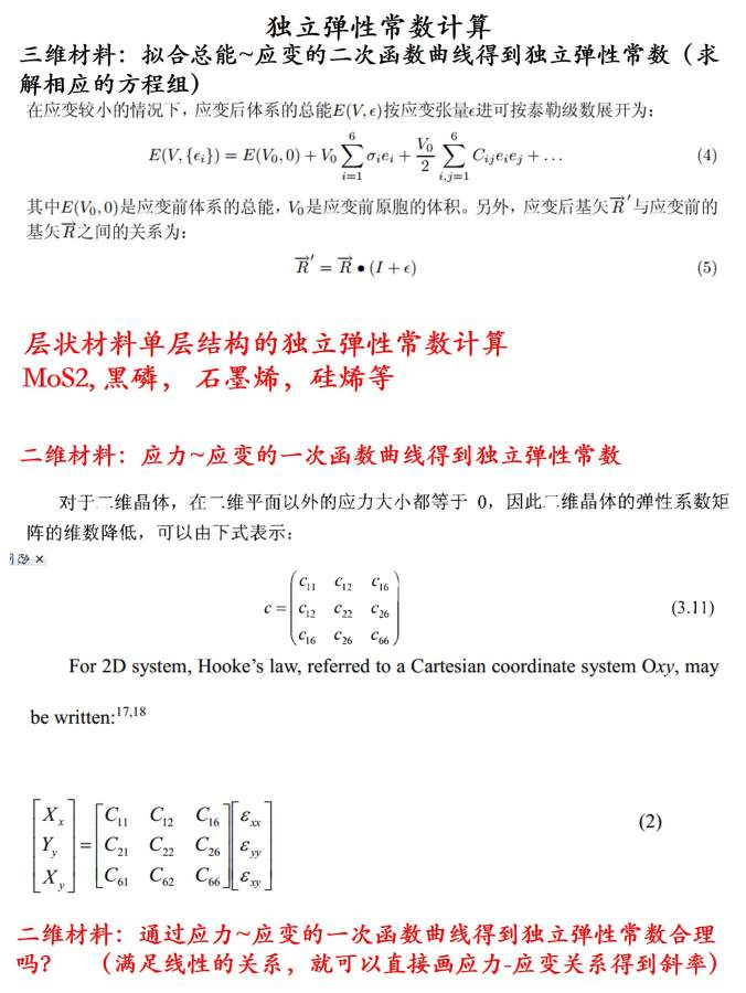 小木虫里面关于二维材料力学性质计算的讨论帖子 VASP计算二维体系应力中的单位问题:KB or N/M(牛/米)? http://muchong.com/bbs/viewthread.php?tid=10152262&fpage=1&target=blank VASP 5.2 直接计算石墨烯的弹性常数,和文献不一致 (内附各种测试结果) http://muchong.com/bbs/viewthread.php?tid=7592923&fpage=1&target=blank |