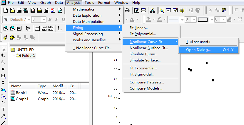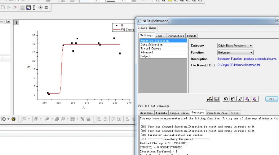 附件中为一些黑色数据点,红色曲线为想要画的,请问怎样使用origin画出红色曲线 用什么函数。谢谢 具体过程。跪拜。请用下列数据,万分感谢 212 1.27 213 0.49 223 29.23 229 30.48 230 25.82 232 30.48 233 33.19 248 30.48 249 29.63 259 33.34 263 24.45 IMAG1565.jpg@月只蓝 |