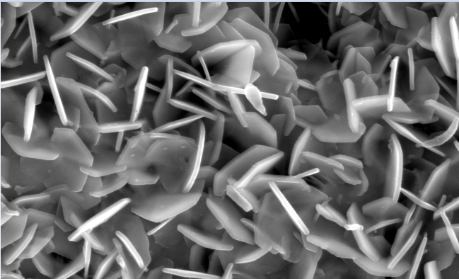 有人知道这种类似六边形的片状晶粒可能是啥吗。。。。做能谱的话结果,应该是Ti/Ba/Zn/O中的几种元素组成,比例不太确定,因为做了好几次,比例都不一样,可能是打上去不一定打到一个晶粒上导致的。XRD也没分析出来是什么。。。 不知道图片发没发出去。。 SEM.PNG |