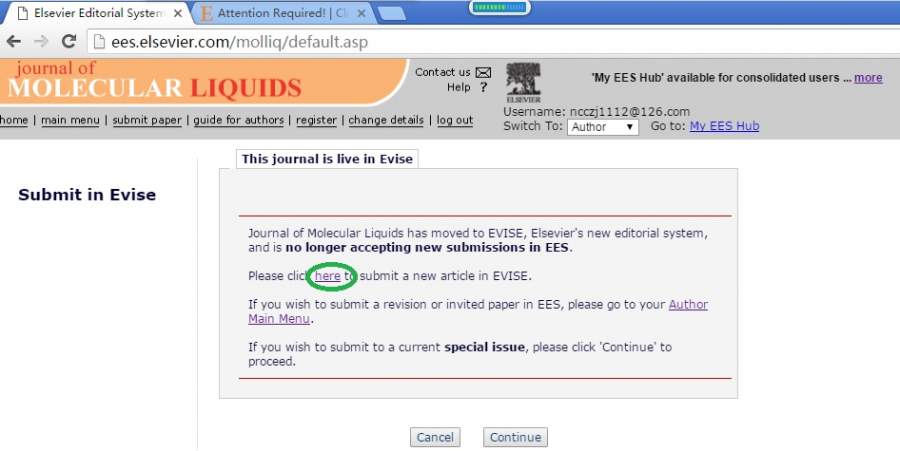 最近准备向Journal of Molecular Liquid投一篇稿件。怎么也进不去该期刊的投稿系统,急求帮助!相应界面如下: 当点击here时,打不开投稿界面,怎么办?急求帮助。我换用了几个浏览器(如:IE, firefox或者chrome,浏览器都是高版本的) 都开不开该投稿系统。 1.jpg 2.jpg |