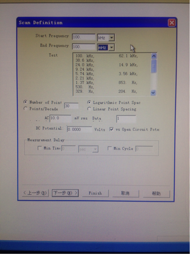 做的磷酸钒锂,组装成扣电,循环了两次,测阻抗,高频区没有圆弧还是直线。用的是parstat2273电化学工作站。 发自小木虫IOS客户端 |