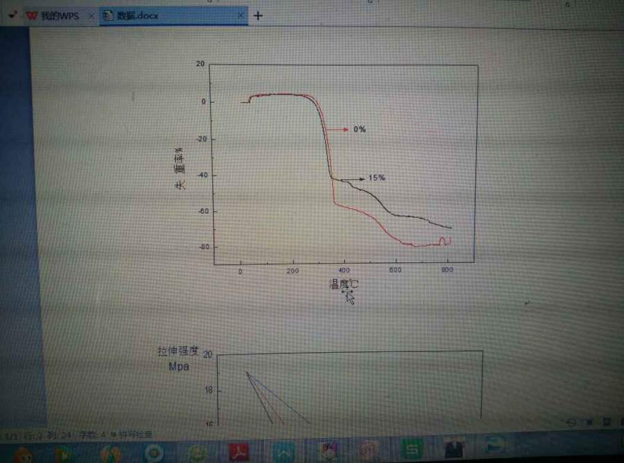 本人毕业设计课题为可膨胀石墨聚氨酯弹性体复合材料的制备,我的可膨胀石墨未经处理,实验完毕进行TG测试,作出了以下失重率的图像。请老师们帮忙分析为什么起始阶段有失重率上升的情况? 发自小木虫Android客户端 |