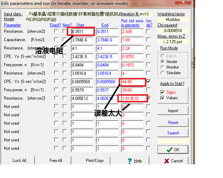 EIS拟合出来电路(乘以电极面积)溶液电阻及误差