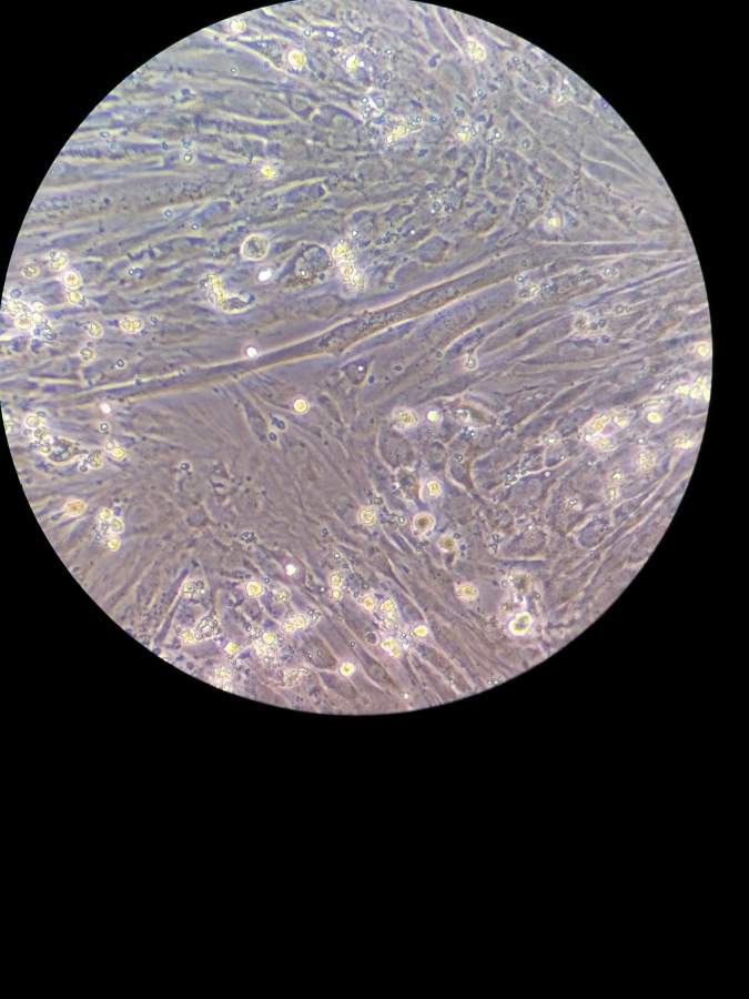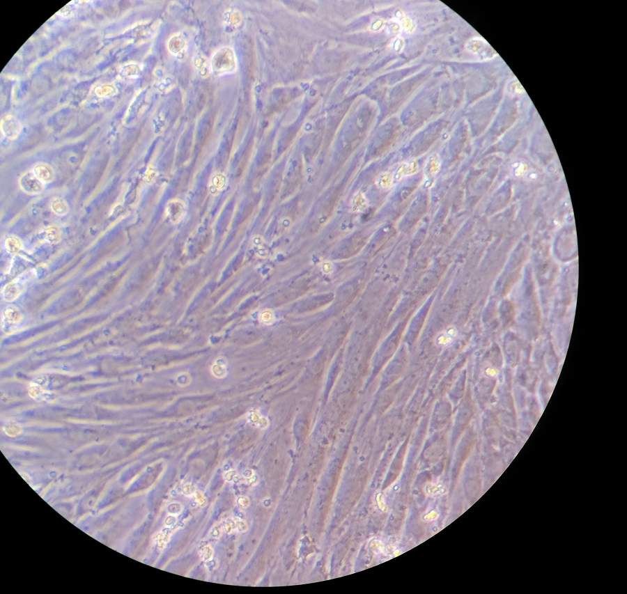 400X倒置显微镜下L6细胞用2%FBS诱导分化6天的结果, 1.请教各位大神帮我看下有没有分化成功? 2.可以用什么方法鉴定分化成功? 3.分化用2%FBS跟2%马血清有什么区别吗? 诱导分化第6天.jpg |