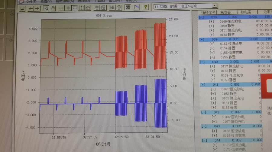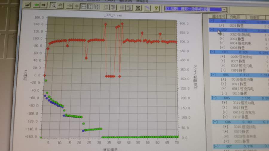 做的是负极材料TiO2。充放电电压区间为1-3V,在低倍率下(比如1C,2C和5C)电压可以控制在1-3V,但是倍率进一步增大的话,电压区间会超出上述范围,甚至可以达到0.5-4.5V。对应的倍率容量快速降低。 请高手解答,万分感谢! 20160523_231741.jpg 20160523_232148.jpg |