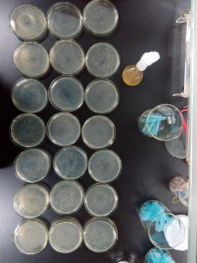 如题,刚开始做实验的时候,杀灭大肠杆菌的效果不错能达到百分之90以上,后来再做正交试验确定不同的催化剂时杀菌效果也挺好的(之前做的试验都是冬天的时候做的,从去年9月份开始做)。从今年五一开始做的大肠杆菌杀菌试验一点效果都没了,催化剂突然就杀不了大肠杆菌了(又买了新菌进行培养,放入冰箱4度进行保存),就想问问大神们,之前效果做的都挺好的,为啥现在一点效果都没了![]() ![]() ,还有就是涂布的时候可以从低浓度涂到高浓度么(我是想涂布完低浓度的平板,涂布器上会沾一点细菌然后涂布高浓度的会不会带过去),现在空白试验是稀释到10-6倍,杀菌试验是稀释到10-5倍,该杀菌的培养皿啊,枪头什么的也都灭过菌了,而且长出来的是大粒的菌落,应该没有杂菌的影响。之前杀菌的培养皿上传了,之后的平板加了催化剂和空白平板的大肠菌在相同稀释倍数下数目差不多。急!在线等!!!大神帮忙分析一下原因还有怎么解决这个问题![]() ![]() ![]() 之前杀菌的平板@天使托 |