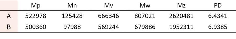 最近拿到两种材料,一种标记为A(粉料),一种标记为B(粒料)。来源方说,B为A的改性(加入成核剂)后造粒得到。让我们分析。 我分析了GPC。两种材料数据值有差别。请教大家。怎么看待这两个数据,粉料经过造粒之后。GPC会发生这么大的变化吗? 未标题-1.jpg |