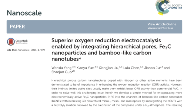 Superior oxygen reduction electrocatalysis enabled by integrating hierarchical pores, Fe 3 C nanoparticles and bamboo-like carbon nanotubes 发自小木虫IOS客户端 |