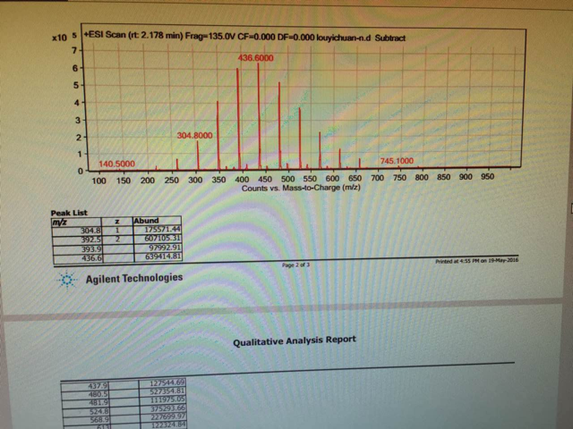 一未知样品,现有气质和液质及红外,求解析谱图,谢谢