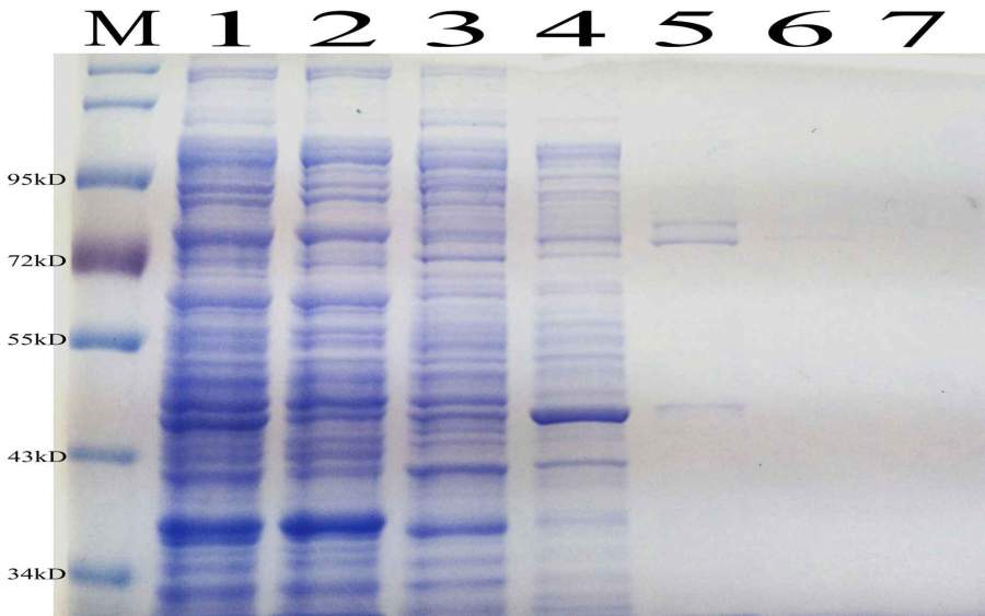 洗脱液是20 50 100 250 500mM梯度的咪唑,然后50mM磷酸二氢钠和300mM氯化钠,pH8.0,这个图片是我今天摸索的纯化,就是上样后清洗充分,然后用5mL的20mM咪唑洗一遍,第四泳道50mM洗脱的,目的蛋白最多,基本上蛋白都下来了,后面就没什么蛋白了,这样的杂带能接受吗?还是继续要摸索或者换一下更好的纯化柱?我用的是IDA柱,据说NTA效果更好? 感谢指导 发自小木虫Android客户端 |