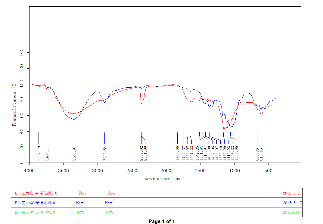 这是我从实验室拷出来要分析的红外光谱分析图,完全看不懂啊,谁能帮忙分析一下啊 @superyeast@wyy080214@klicking@学术巨星@鸭绿江畔 |