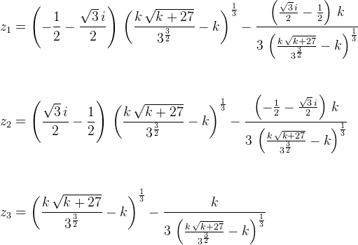 若方程是形如z^3+2*k+k*z=0的形式,则可套用现成的公式求解出根。