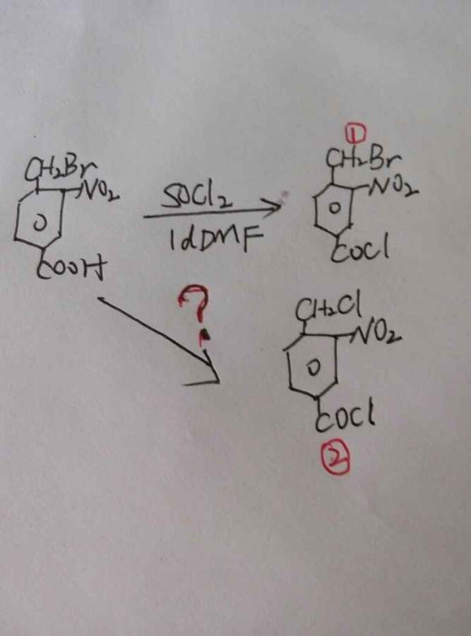 如图所示,按正常来说该反应挺简单,应生成产物1(反应条件,过量SOCl2,1滴DMF催化,回流反应2h),但最后得到的质谱证明生成了2。问题出在哪里,有哪位大神知道反应物生成2的机理,求大神予以解答,不胜感激。 发自小木虫Android客户端 |