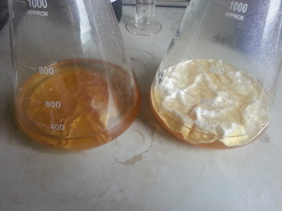 如图,真菌在相同的液体培养基里静置培养,发下左边的沉到发酵液底部,而右边的漂浮在面,请问左边的这种情况正常吗?还是已经挂掉了?本人在微生物方面基础是零,请不吝赐教,谢谢! 20160530_101319[1].jpg |