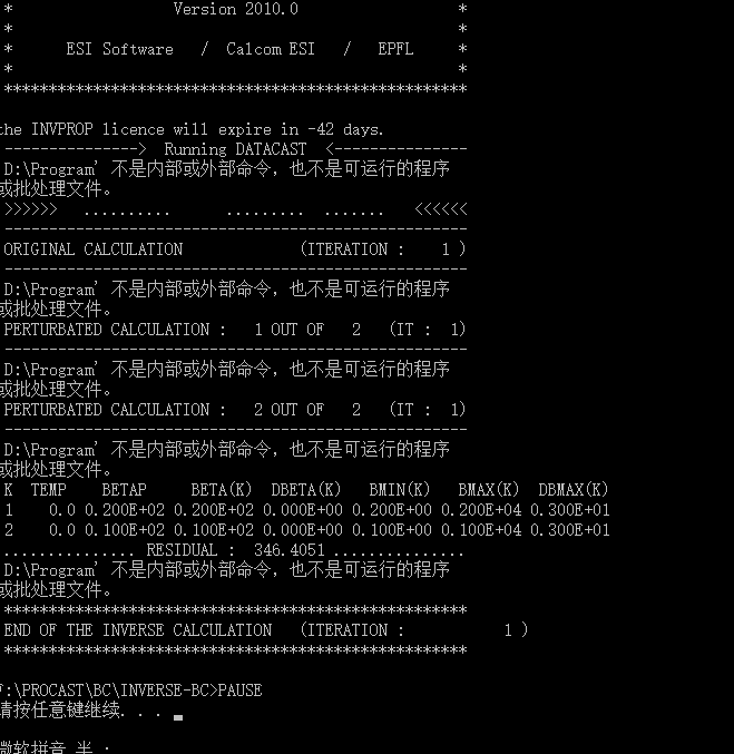 各位大神,我用procast2010计算网上找的一个反算程序时,发现迭代次数一直为1,而且计算出的结果还是设置的初始值。有没有哪位大神帮忙看下?金币不是问题。ps计算结果和计算例子都上传了 1.png |