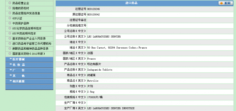 求吲达帕胺片2.5mg规格的法国施维雅生产的说明书 已有1人参与