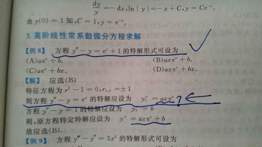 图中,y1*为什么设成axe^x,不是应该是ae^x吗?fx中并没有x的一次多项式呀? 发自小木虫Android客户端 |