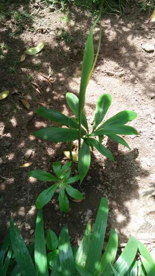 是天南星科掌叶半夏,其块茎为虎掌南星。