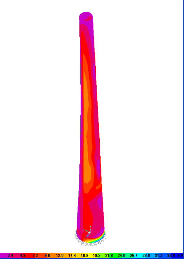 这是烟囱筒壁混凝土配筋计算图,不知道是什么意思?是应力云图吗?单位是什么,求大神指教