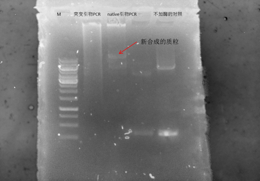 小妹最近在建立随机突变库,先是易错PCR,得到300bp左右的随机突变混合物,切胶纯化后将此混合物作为大引物,运用MEGAWHOP的方法进行全质粒PCR。然而问题来了,点样孔处很亮,其他地方看不到特异性的条带,然而,用未突变的片段作为引物是可以做出来的,已上图。我试过56度、68度、72度退火温度,都不行,快崩溃了,求大师指导一二。感激不尽。 图片1.png |