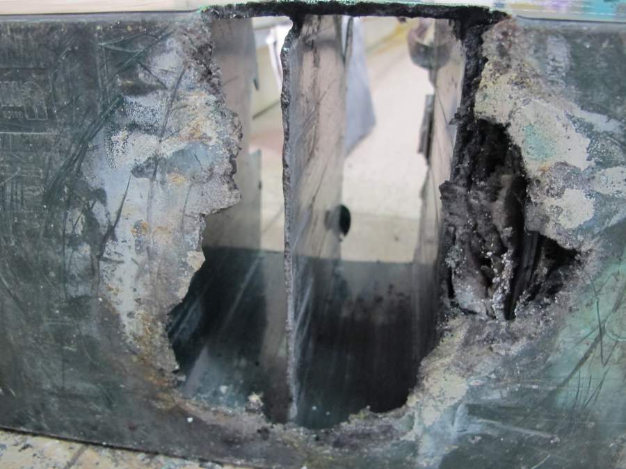 | 电池壳未见明显故障,排除内阻增大导致发热。基本确定是短路,短路可能是底部沉积的铅膏被还原成铅导致正负极联通短路,而枝晶比较容易发生在装配压力大的地方,且产生烧穿电池壳的热量需要较大电流,排除枝晶原因。 |