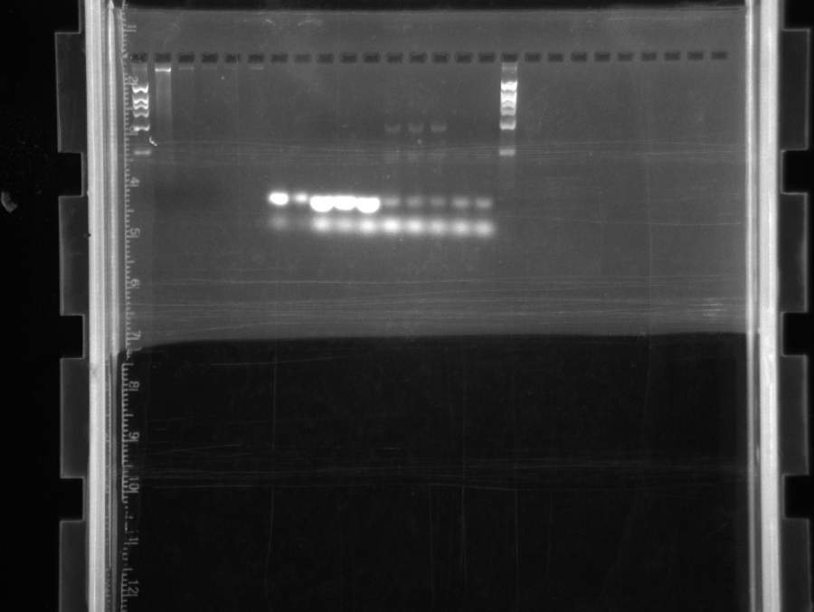 之前跑的条带是400bp左右的产物,最近又提了DNA,做了PCR,跑了电泳,条件和之前都一样,但这次跑出来的不知道是什么东西啊,最亮的直接跑到maker200bp底下了,求助大神们帮忙看一下啊,刚接触分子也是什么都不懂啊 16.6.5.jpg |