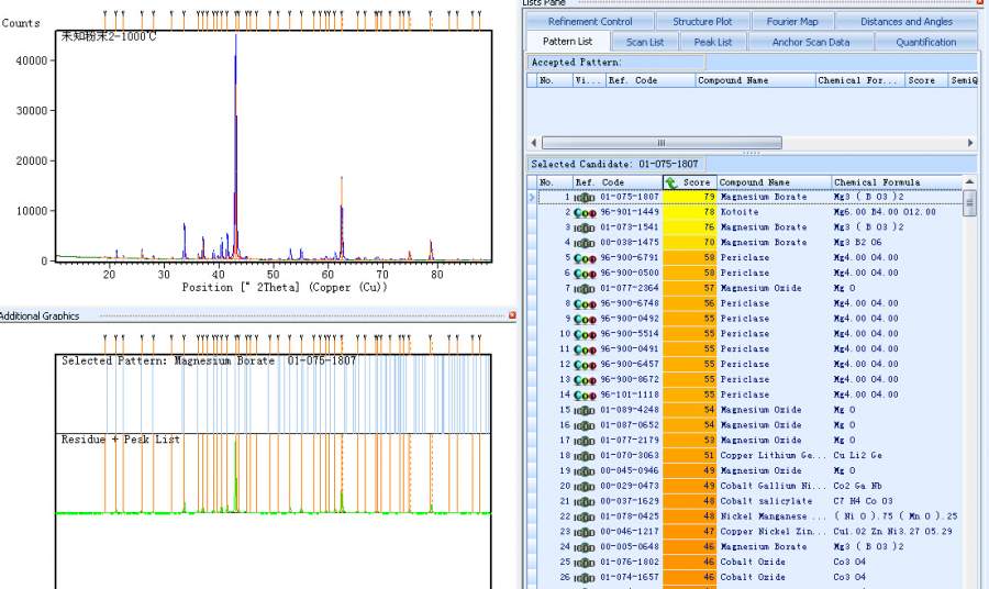 还是不知道是啥,哎。 这是经过1000℃煅烧之后的xrd图,分析之后显示其中Mg3(BO3)2的峰与之重合度较高,这样子是不是就能说明煅烧之后的主要成分就是Mg3(BO3)2? 剩下的几个小峰是MgO的峰. 2.jpg 1.jpg |