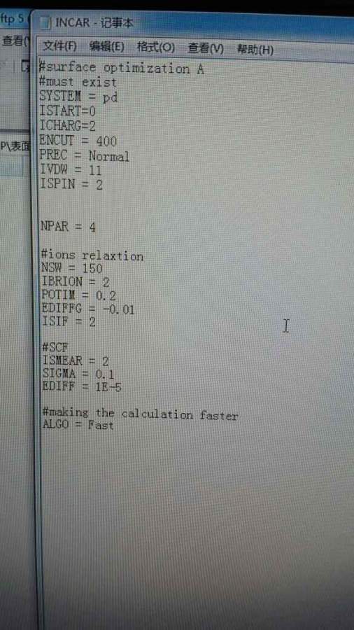 做的是结构优化,不知道为什么又出现了这样的问题,是INCAR的问题吗?我的INCAR图中所示,希望懂得大神能指点一二,不胜感激。 发自小木虫Android客户端 |