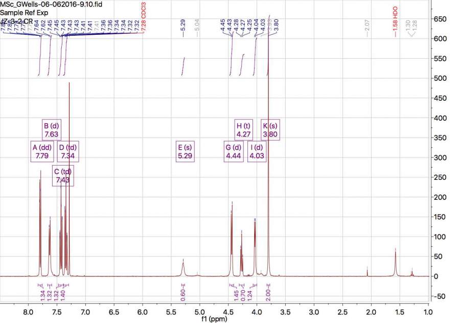 我看了看,合成反应貌似进行的不错,3.8的甲氧基,证实了产物的存在。只是位移3.8,有点低场了,按经验应该出在3.5-3.6。3.8应该是出在苯环上的甲氧基,所以需要进一步积分苯环区。看看是不是甲氧基加在了苯环上。 1.先将3.8甲氧基,积分改为3,看看其他峰尤其是苯环区的峰是否为整数比。另外看看氢个数是否符合结构上的氢个数。 2,方法已经教你了,自己来判断吧。 3.尤其说下2楼,抢楼倒是挺快,你自己看看哪个甲基应该出在2.0,那是甲基直接连在羰基上的情况。我滴天。听说你还办培训班儿收费培训解析核磁?好吧。我已经服了。 [ 发自手机版 http://muchong.com/3g ] |