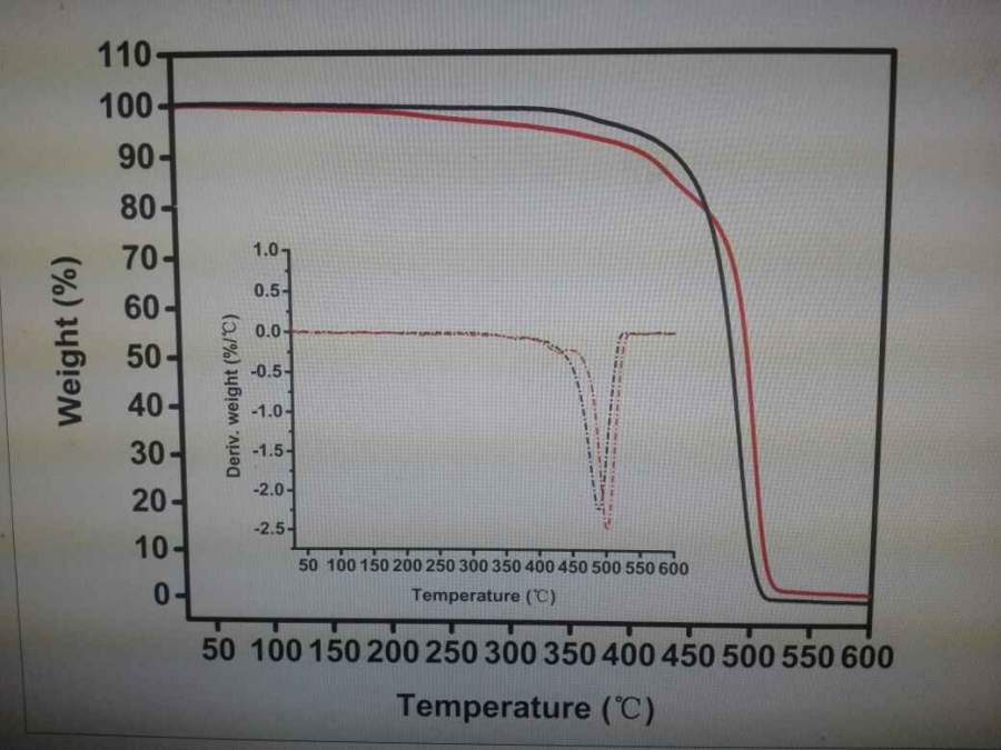 红色是接枝改性后曲线,黑色是改性前,请问热稳定性是增强了还是?虽然改性后初始分解温度下降,但是通过dtg曲线,最大失重速率温度增大了,请问该怎么解释? 发自小木虫Android客户端 |