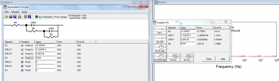 大家好,ZView 软件中Equivalent Circuit 那儿显示多个R和CPE,但是Instant fit 那儿只有四个值,怎么给元件赋初始值啊,求指导 (1ZNWT%]5@{LT}NO}@_SIZ4.png |