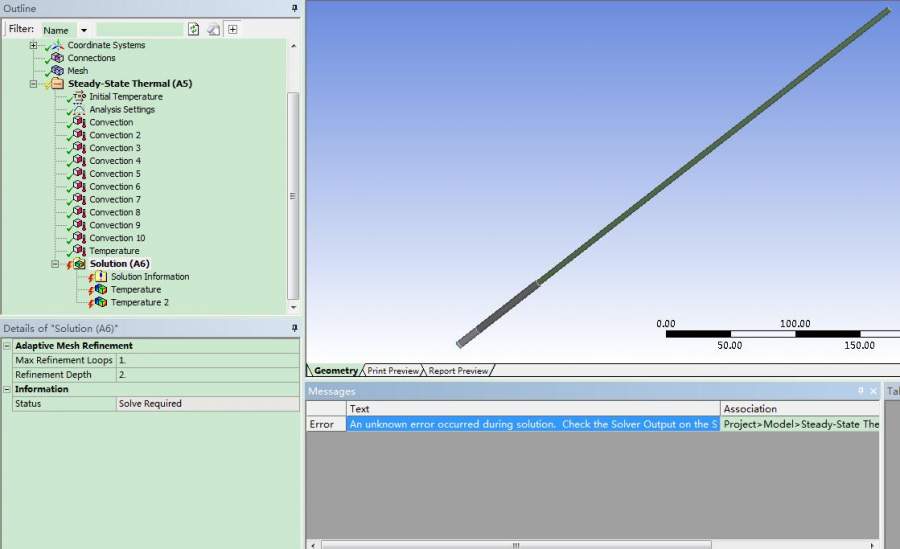 “An unknown error occurred during solution.  Check the Solver Output on the Solution Information object for possible causes.