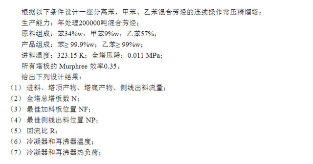 Aspen设计初级题,求过程 已有1人参与