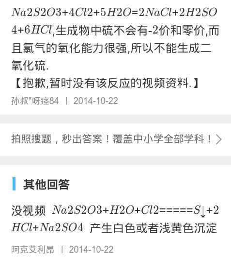 硫代硫酸钠与氯气反应为什么也会有硫单质产生 发自小木虫Android客户端 |