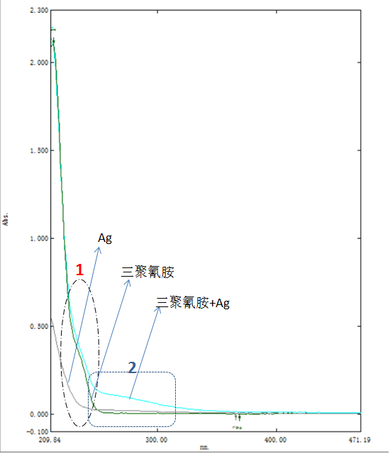 求助:三聚氰胺与硝酸银作用后的紫外图谱分析。