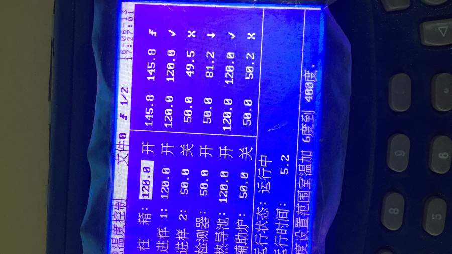 在进样的时候,柱箱温度为120℃,但是一点开始温度就会升高,一直等到进样完才会降低到120度。求个位大虾帮助,不胜感激。一开始进样柱箱最右边出现一个π,然后就是f,就这样一直在升温。求大神解答啊 IMG_3162.JPG IMG_3163.JPG IMG_3165.JPG |