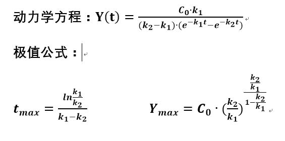 背景是这样的,我在做一个胡萝卜果胶提取的动力学研究实验,现在确定了方程,而且得到了几组数据,接下来就是要进行拟合求出方程里的参数。可是在这里出新了问题,我通过其他办法(matlab曲线拟合)得到的参数带回方程求极值,得到的极值始终不与理论值相符。比如我实际上最大值(时间)为75分钟,我求出的极值始终在35左右。下面是我的其中数据和方程(附图片),还有求极值的公式。