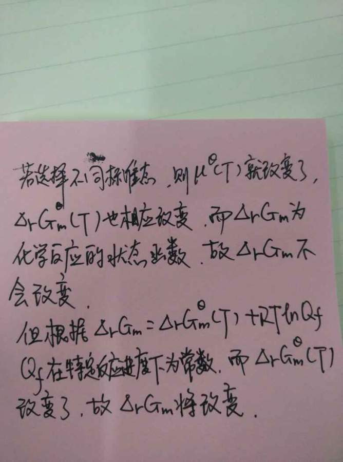 关于吉布斯自由能和标准吉布斯自由能的关系求解