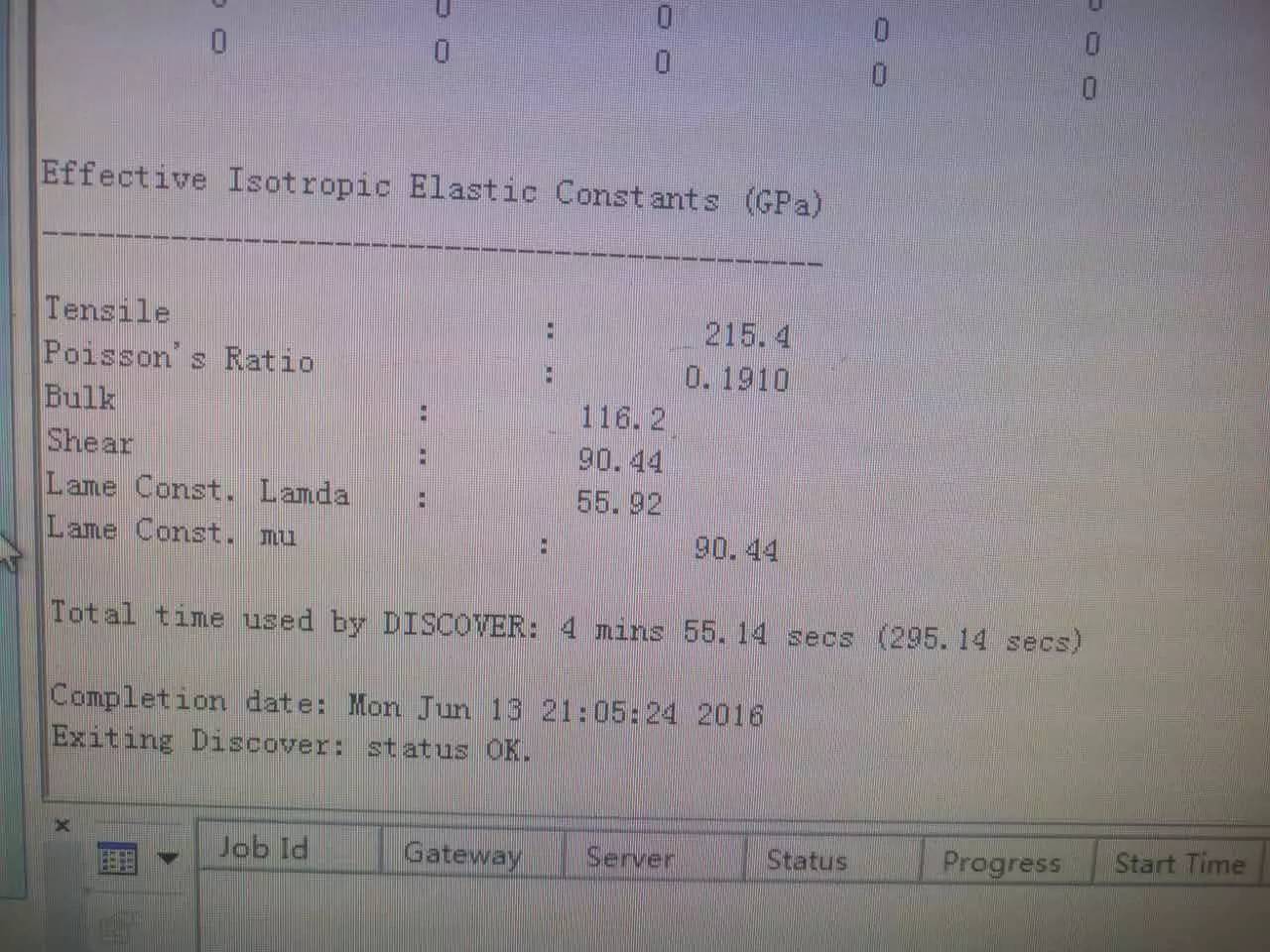 我用Discover和Forcite模块分别对HMX进行了相同时长的模拟计算力学性能,所有条件都一致,但是最后结果差太多,Discover模块计算结果几百多明显不合理(因为需要用Discover模块计算与别人作对比以验证自己工作正确性),有可能什么原因呢?我还重新安装了软件,清了内存,因为一直是可以使用的,突然就这样啦。![]() |
