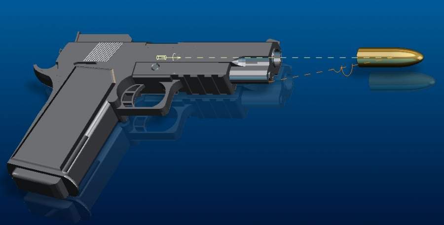 用Proe模拟的手枪射击效果,子弹往前高速平移的同时保持高速旋转已有1人参与