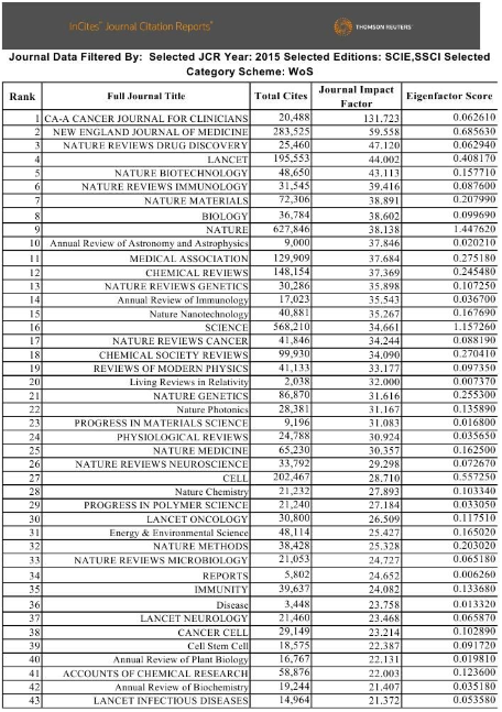 2016年SCI影响因子新鲜出炉!(2015年版)