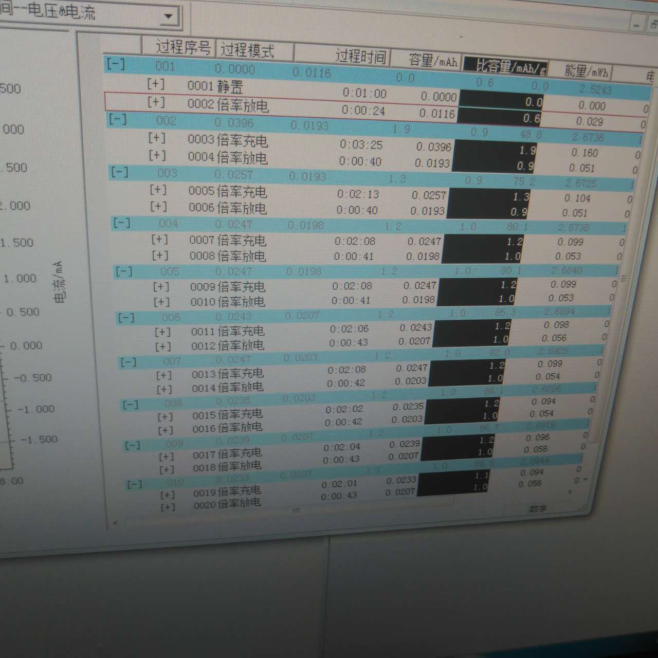 ![]() 锂离子电池在0.2—0.2倍率测试时,充放电比容量在150多左右,但是为什么到了0.2一0.5的时候,比容量几乎没有了。@langzhizhou |