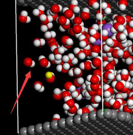 这样建模水分子在界面两端由于周期性 出现断建如图4 水分子的一个氢在另一端显示