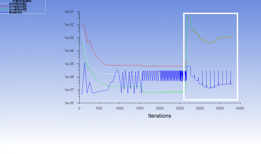 要计算的是套管式换热装置,管内为冷流体(液体水),套管间为热流体(液体水)。内管直径20mm,外管直径为50mm,网格大小设置为1mm,设置时间步长为0.2s,尝试着计算时出现这样的残差曲线,是不是意味着不收敛?该怎么办?求大神帮忙。 无标题.png@wuming524 |