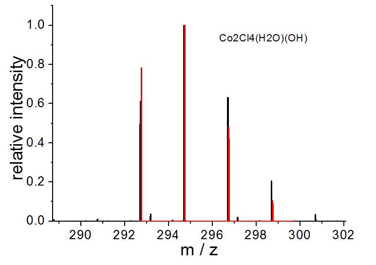 最近在打高分辨的时候在阴离子模式捕捉到一些,间距为2的峰,用chemdraw拟合之后发现可以和CoCl2无机盐的峰匹配,但是间距为2的峰应该怎样确定价态呢,在Chemdraw中模拟的时候也没有得到间距为1的低峰。同样在阳离子模式下如果遇到这种间距为2的峰应该怎样处理。 1.png |