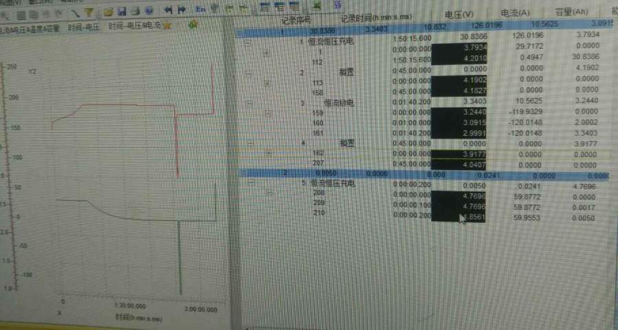 标称容量30ah。用1c充电后进行4c/2c放充循环。用电池内部微短路自放电似乎可以解释前三个工步发生的现象,但后面的搁置阶段电压突然回升至4v就很难解释了